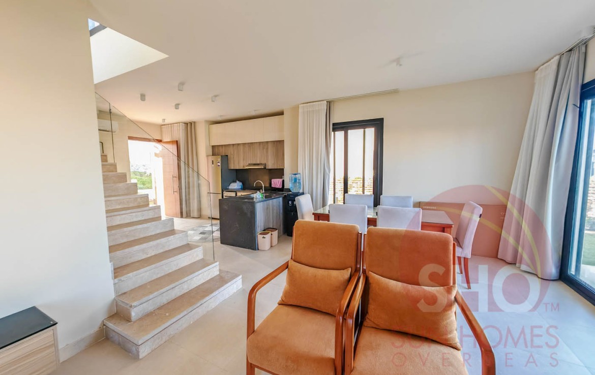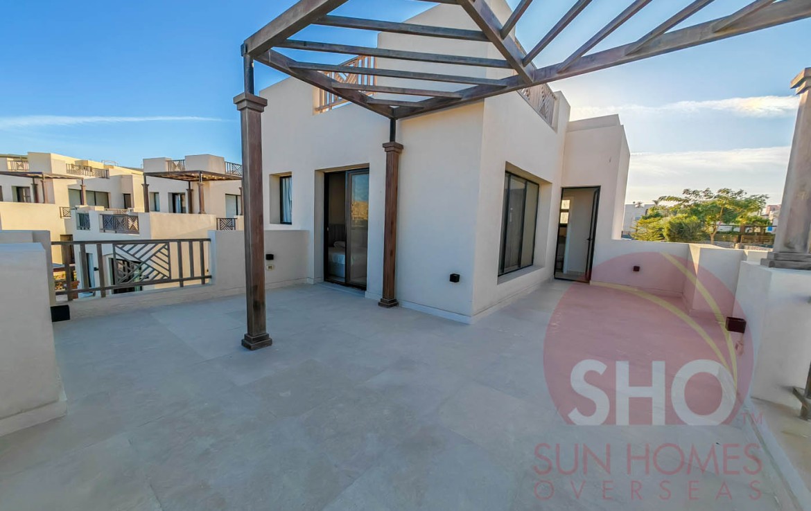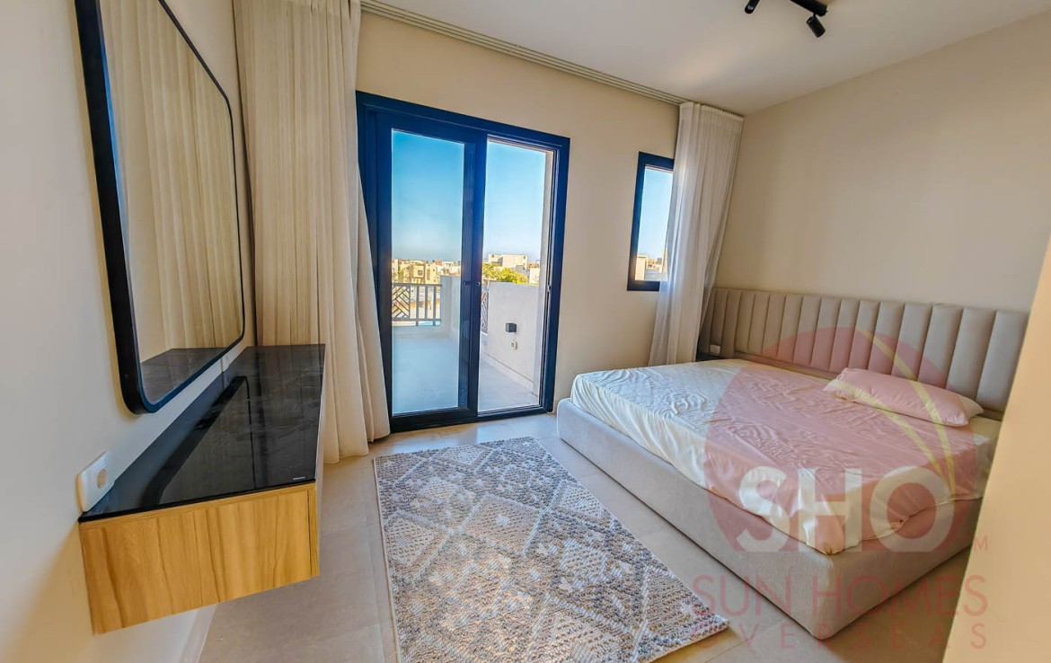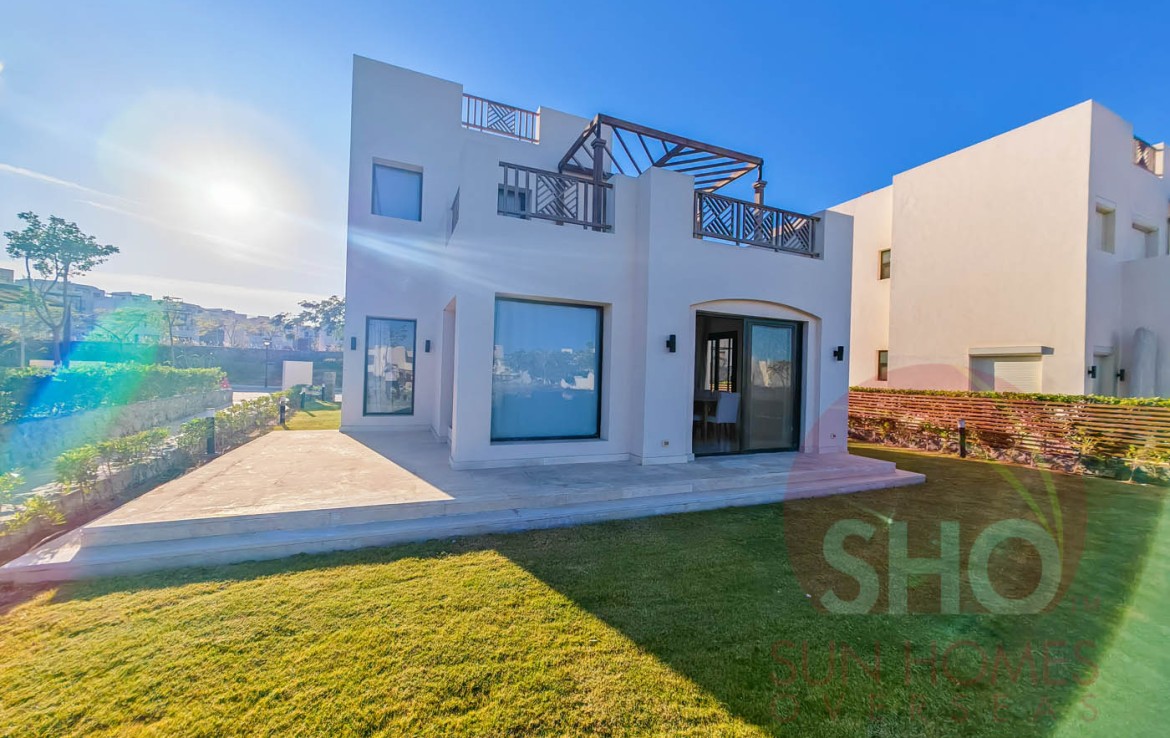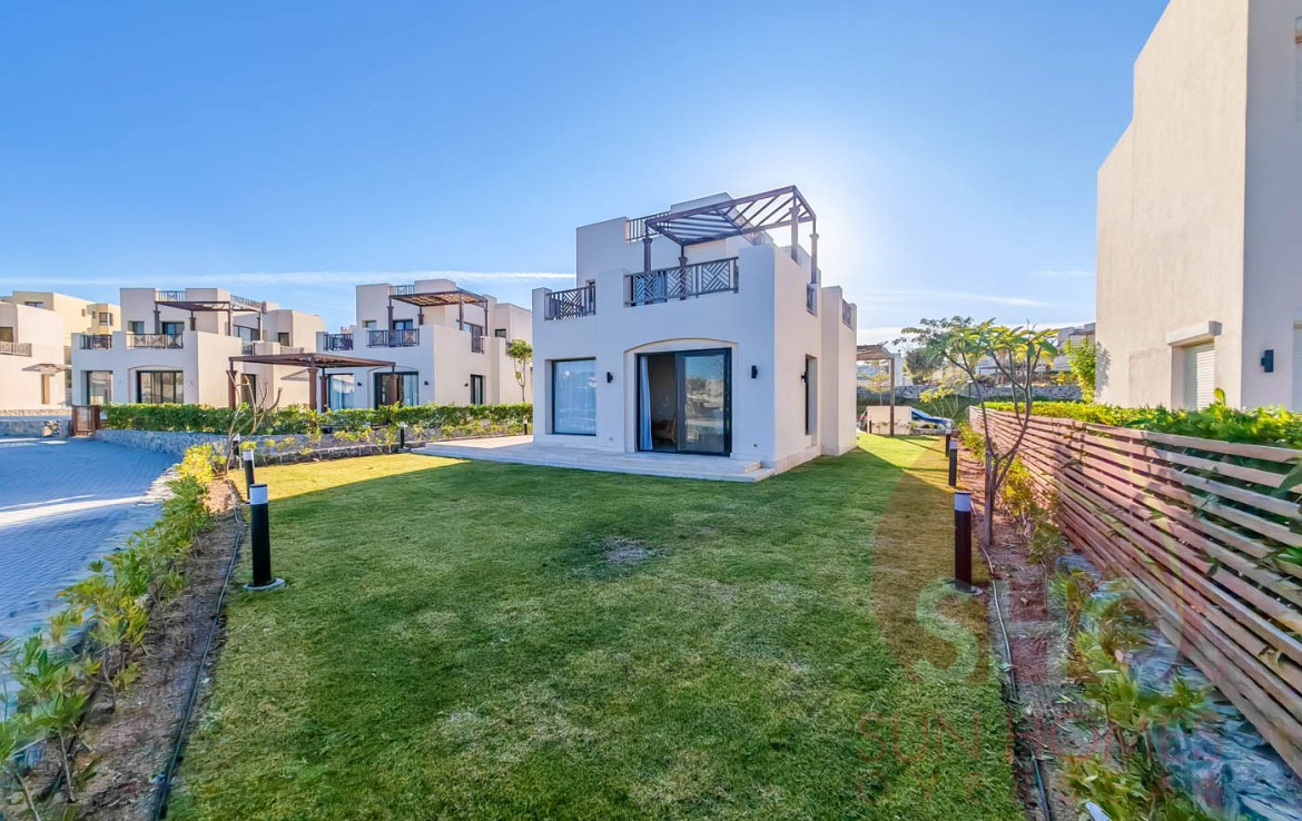 Zum Verkauf steht eine brandneue, freistehende Luxusvilla mit 5 Schlafzimmern (4 Zimmer + Dienstmädchenzimmer) in der exklusiven, geschlossenen Wohnanlage Makadi Heights. Diese wunderschöne Villa wurde mit hochwertigen Materialien, Möbeln und Haushaltsgeräten eingerichtet und wird schlüsselfertig und bezugsfertig verkauft. Dazu gehört ein großes Grundstück von 286 m² und atemberaubende Dachterrassen mit wunderschönem Pool, Gemeinschafts- und Meerblick.