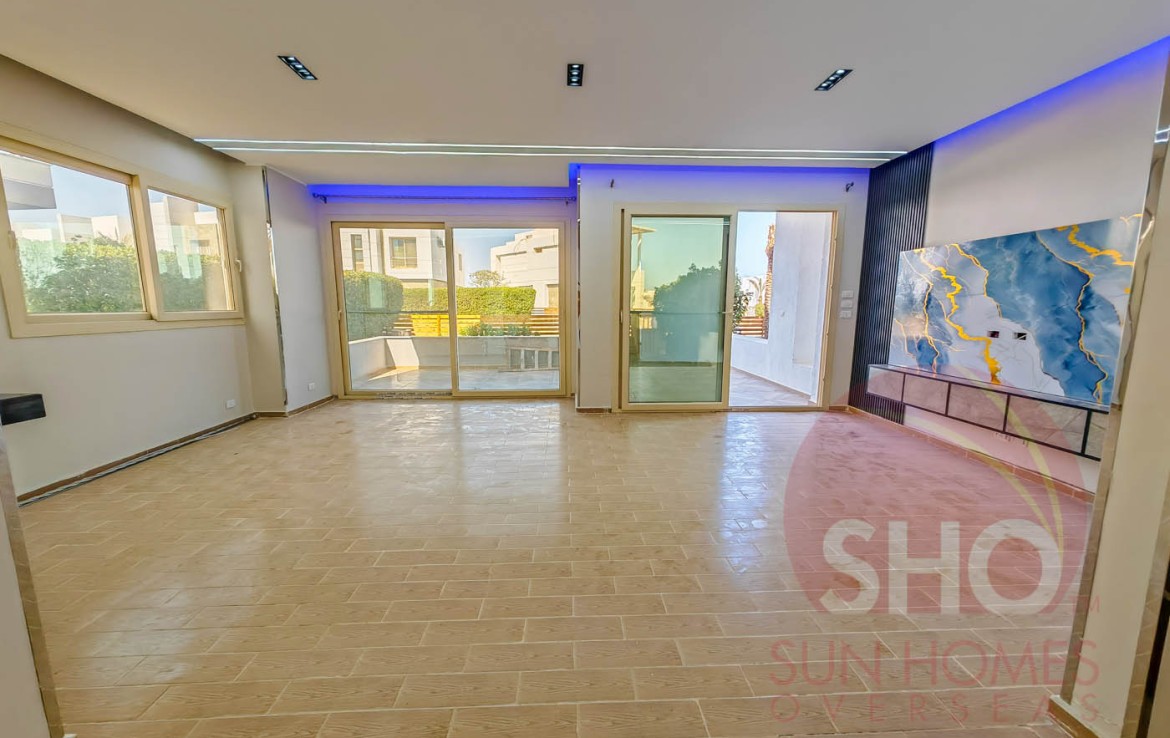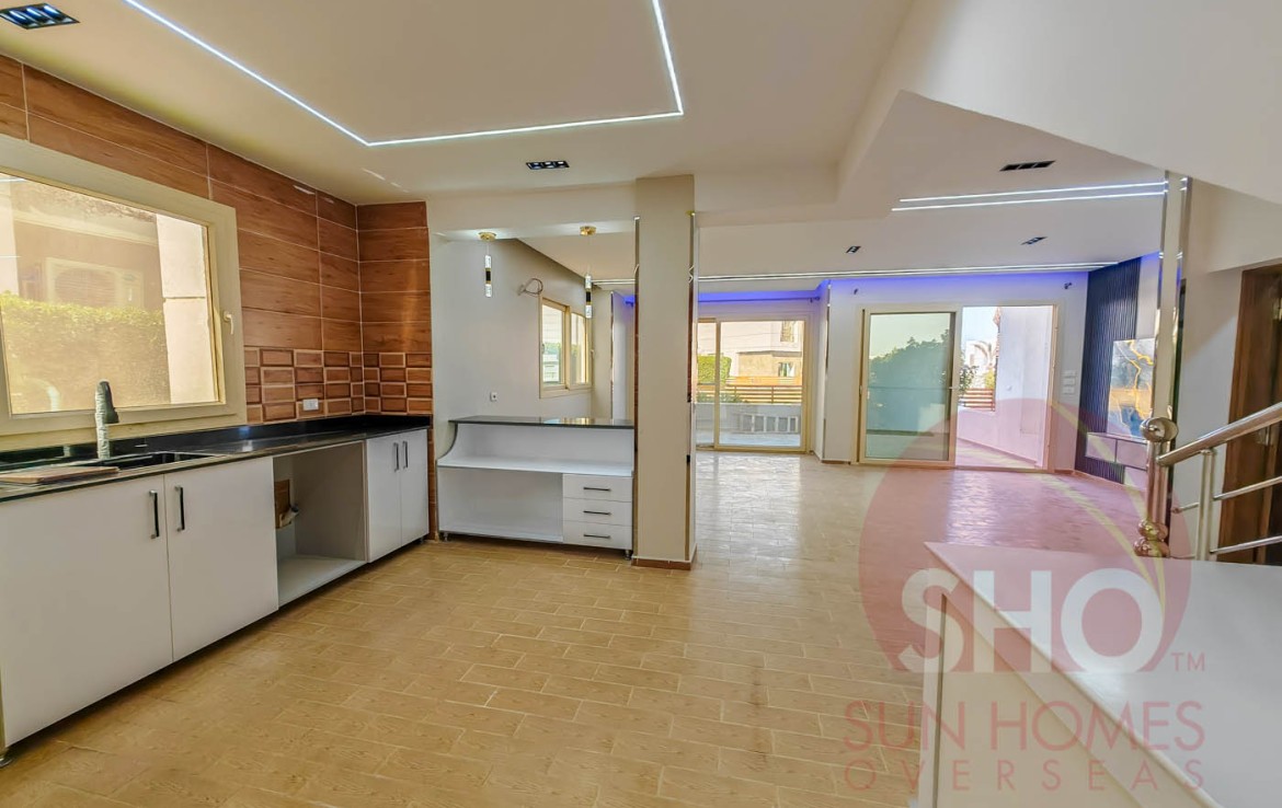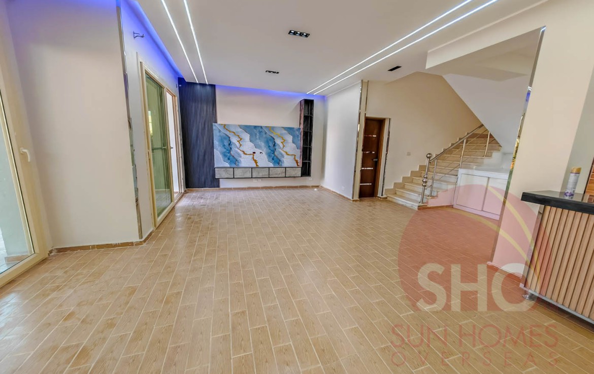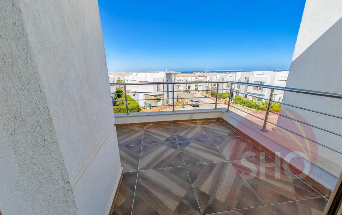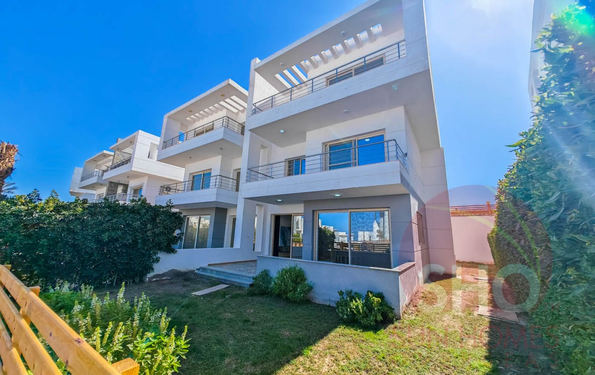 Presenting for sale a luxurious and newly finished 4 bedroom, 3 floor, 3 bathroom property with 135m2 of private garden on the gated Sky Star Villas Compound near Sahl Hasheesh and a few minutes from Senzo Mall. This newly internally finished villa is built over 3 floors and enjoying a floor area of 85m2 on the ground floor, then 110m2 for each of the 2 floors above. The ground floor comprises of a large reception, dining and semi open plan kitchen with a large guest bathroom. The 1st floor comprises of 2 bedrooms, a guest bathroom and a second upstairs living area (potentially this could be converted to a bedroom). The top floor also comprises of 2 large bedrooms and a guest bathroom. All bedrooms have access to spacious terraces with sea views. The property also enjoys a private garden of 135m2.