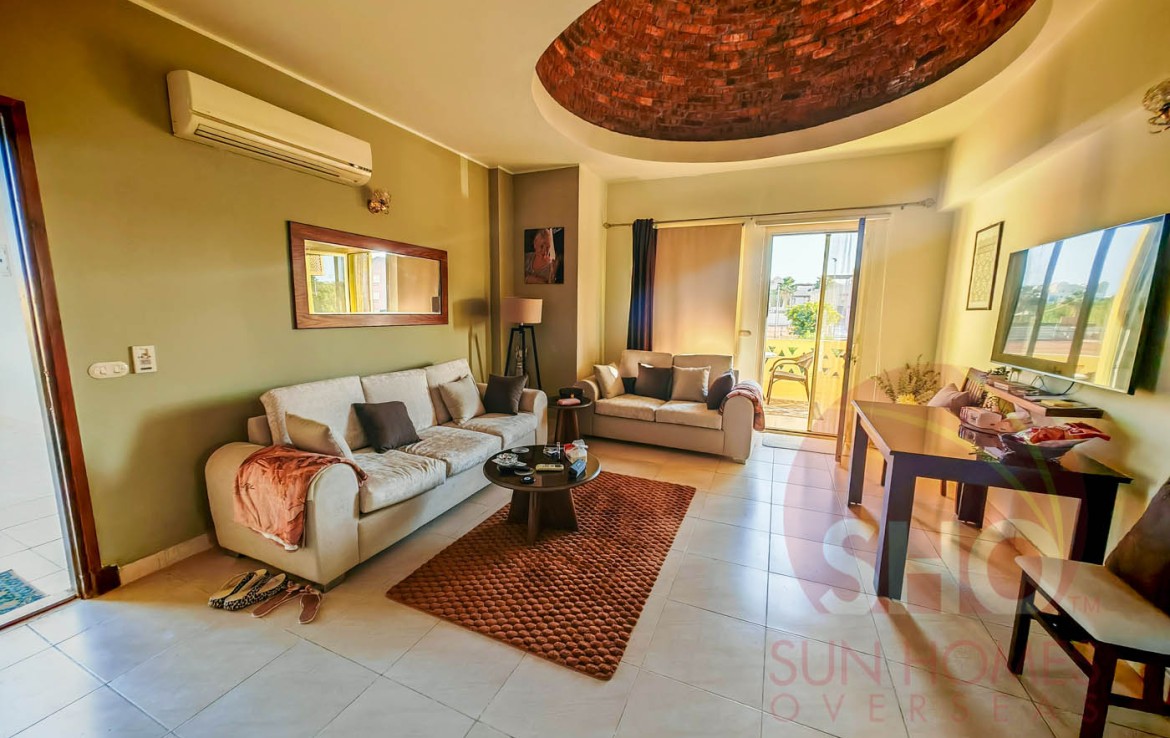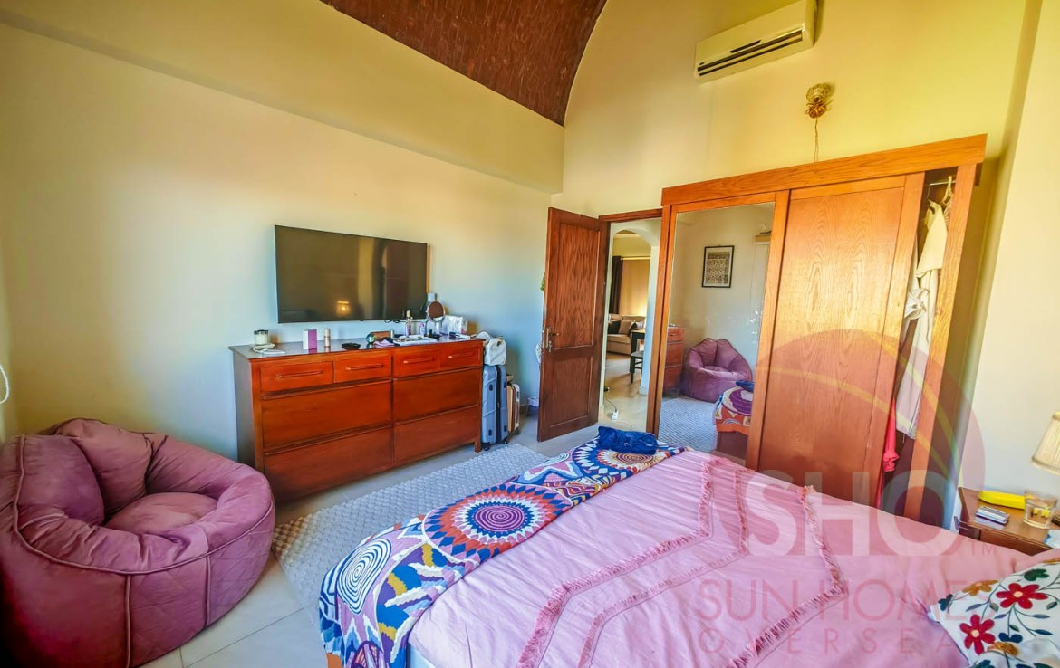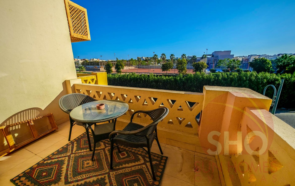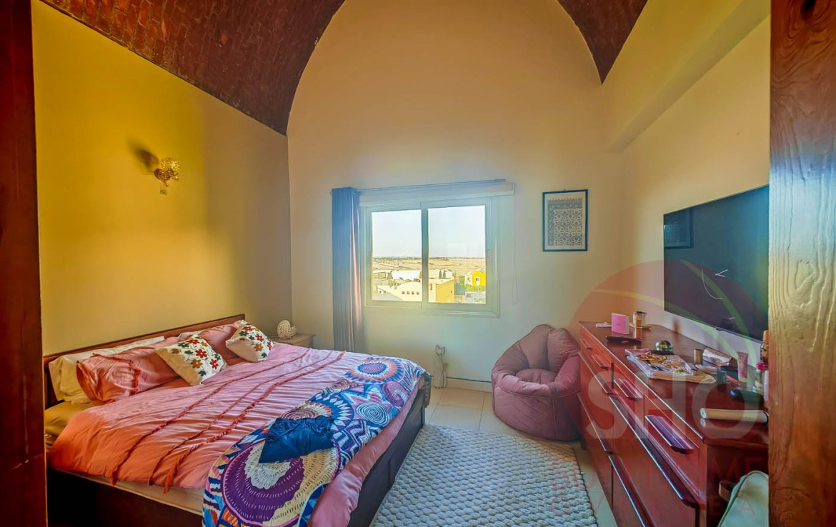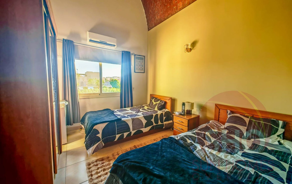 Presenting for sale a spacious second floor fully furnished 2 bedroom apartment on a T9 block in Makadi Heights which has its own private swimming pool. This property is sold fully furnished and includes a spacious living area with 3 + 2 seater sofas’ coffee table, wall mounted Smart TV. There is a separate kitchen area with solid wood units and black granite worktops, gas oven & hob, washing machine, fridge . There are 2 double bedrooms, both of which are spacious in size. One has a double bed and wardrobes while the second has 2 single beds and wardrobes as well as bedside tables. The bathroom is fully tiled with toilet, sink and shower cabin while the balcony has a quiet and sunny outlook. The property is in a prime location within Makadi Heights, overlooking the clubhouse and next door to the public pool.