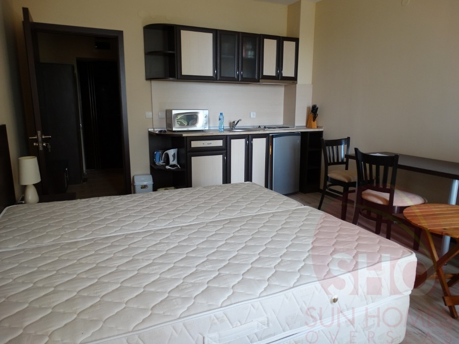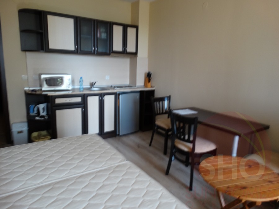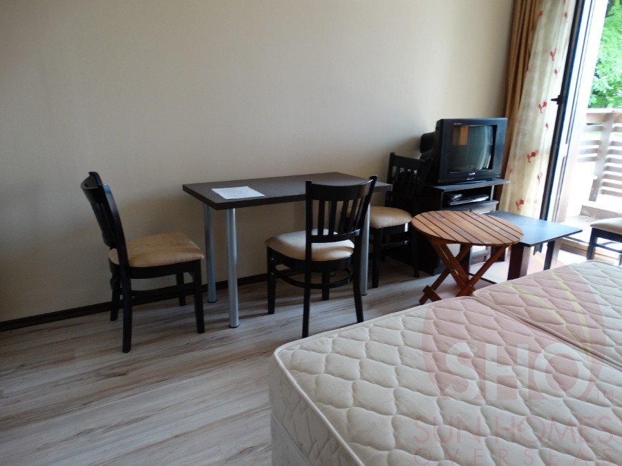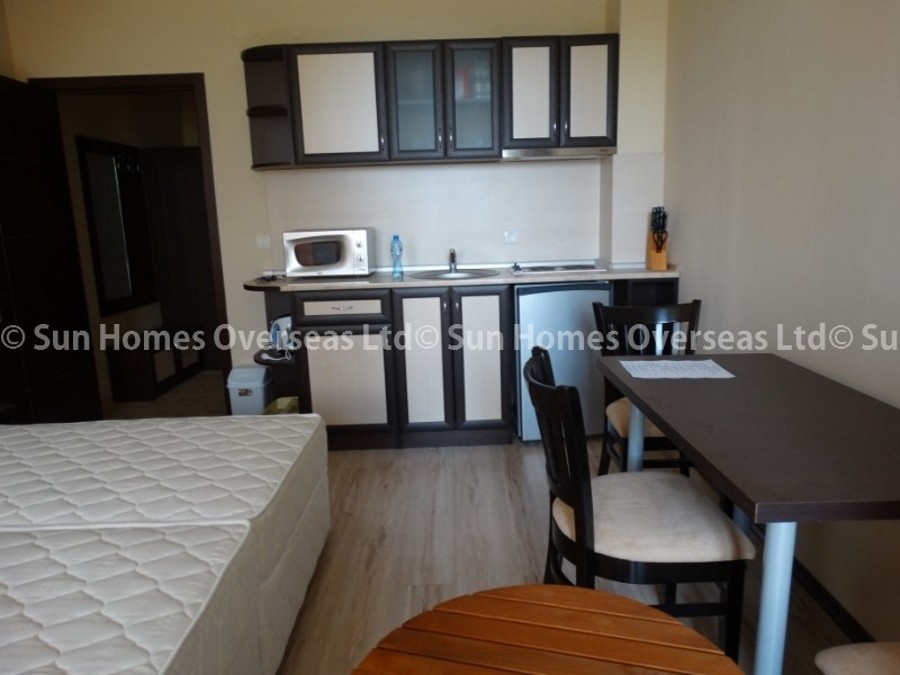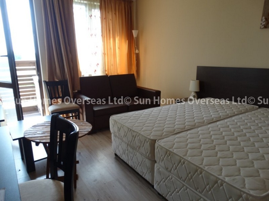 Viewing is recommended of this group floor studio which is to be sold furnished. The property consists of a spacious entrance ,fully tiled bathroom with bathtub/ over shower , fully equipped kitchen with white goods, lounge area with double sized bed/ sofa bed/ storage cabinets. Patio door opens onto the balcony which has west facing views to the mountains