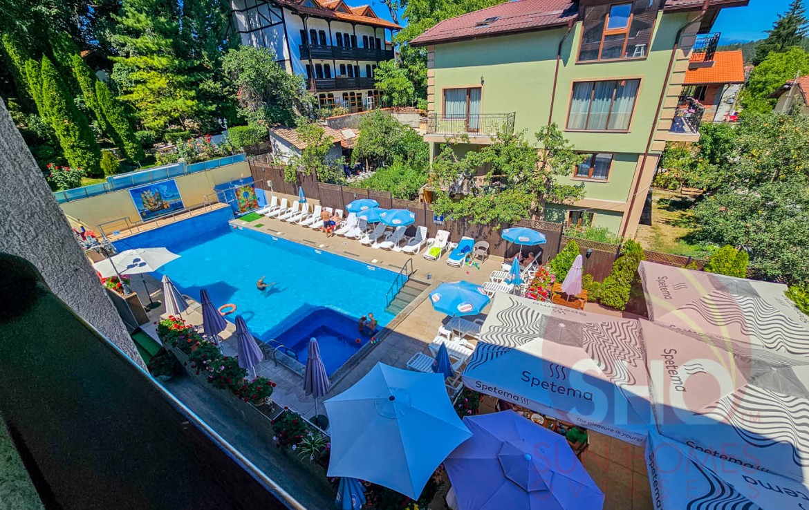 Aquilon spa aparthotel is situated in Banya with its famous under ground thermal spa water running through the town making an ideal location for people seeking its therapeutic and medical benefits. The apart hotel boasts outdoor thermal swimming pool and spa centre, private parking, reception , lobby bar/restaurant, working lifts and garden. Banya town has several spa hotels, bars and restaurants and is 5km from Bansko ski resort and 2km from Razlog.