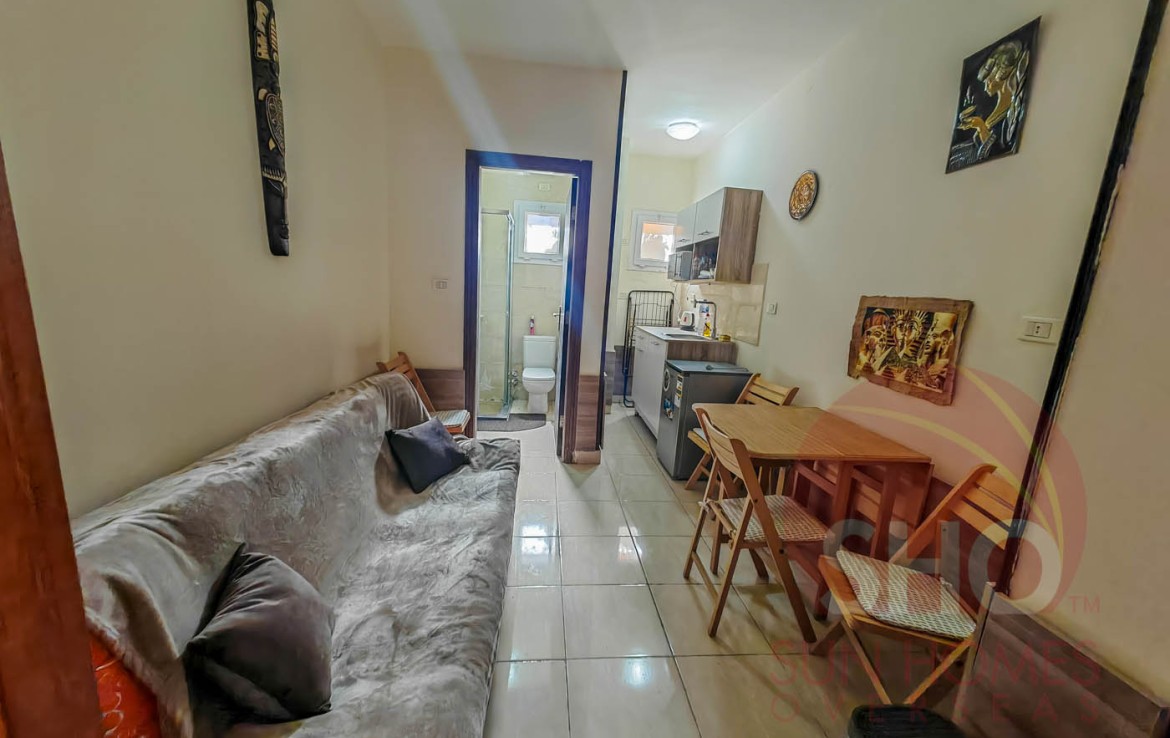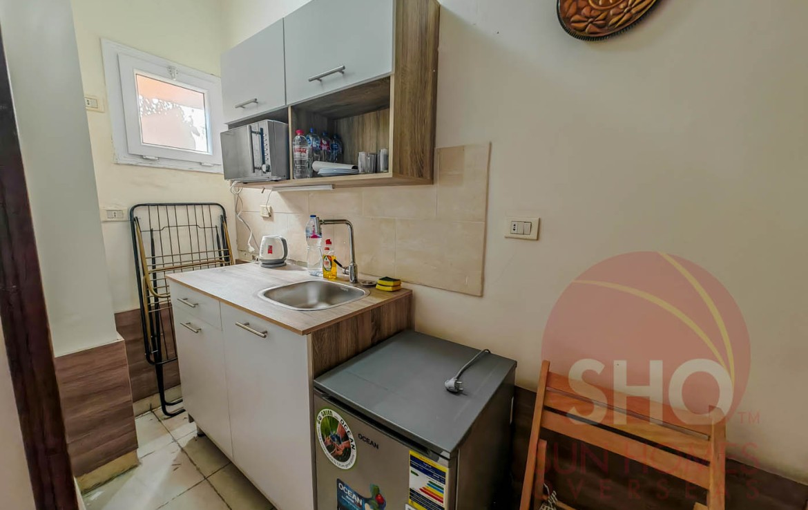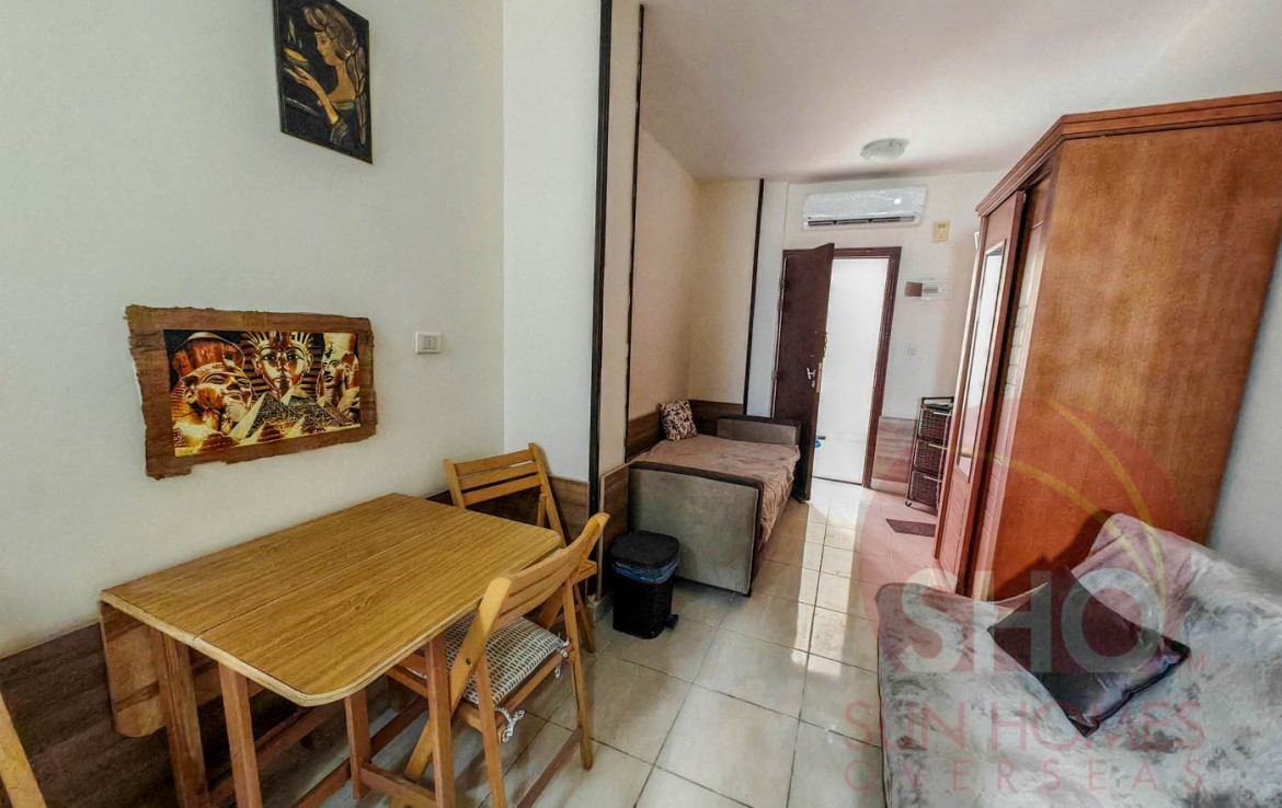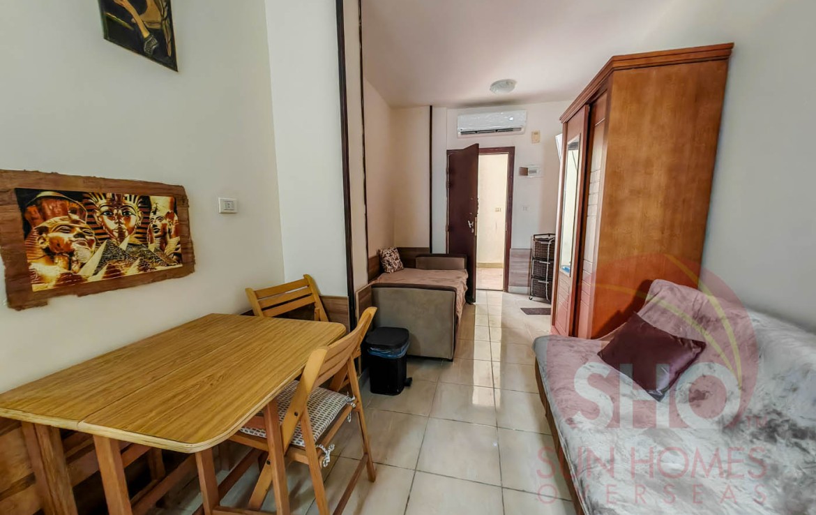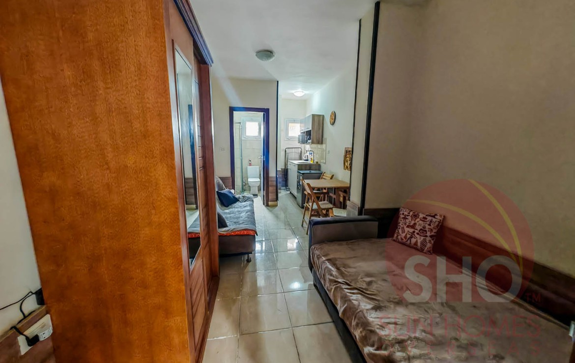 A pool level fully furnished studio, ready to occupy and perfect for those looking for a bargain home in the sun. With open plan living area zoned off into a seating area with Sofa, sleeping area with a bed and wardrobe, kitchen with fridge and microwave and a bathroom with toilet, sink and shower enclosure. The property opens directly onto the swimming pool level.