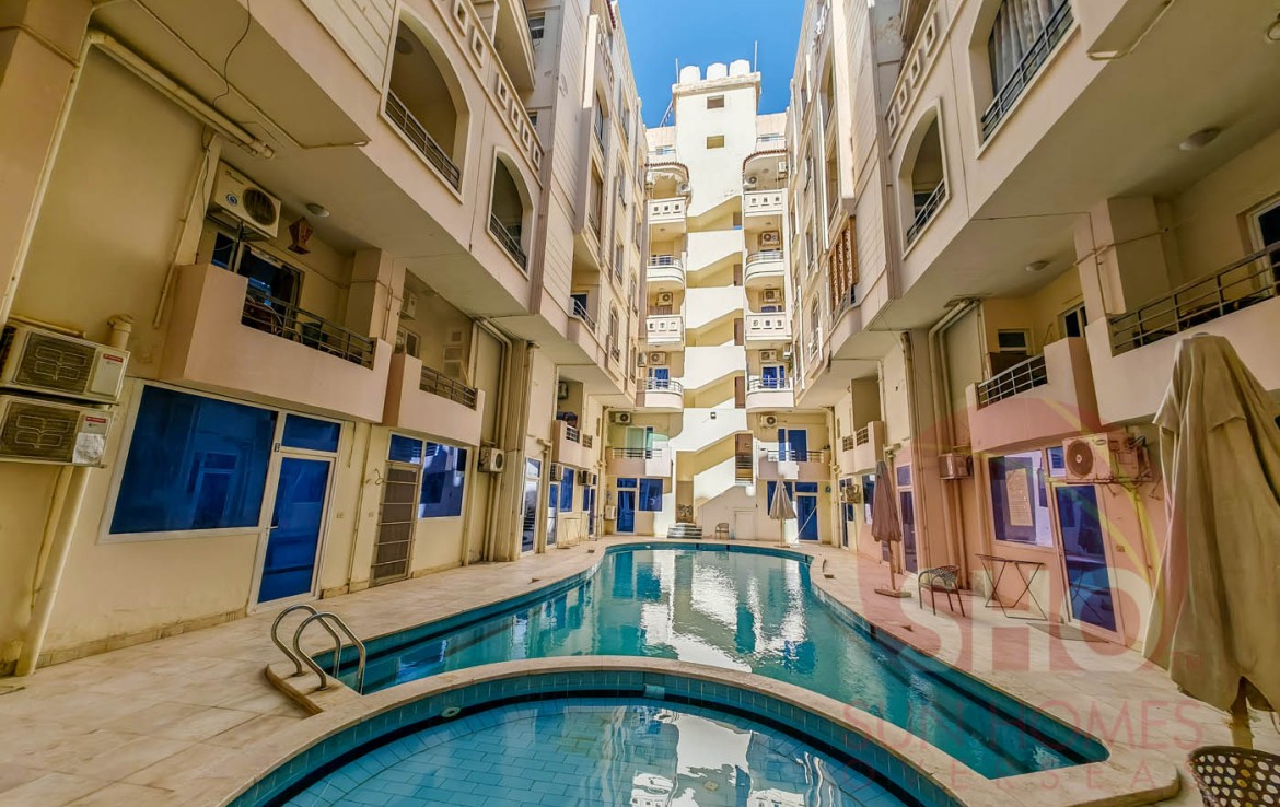 Tiba Paradise Hurghada is a small apartment building in Al Ahyaa, located overlooking a main road and offering a security guard, lift to all floors and a swimming pool in the centre.