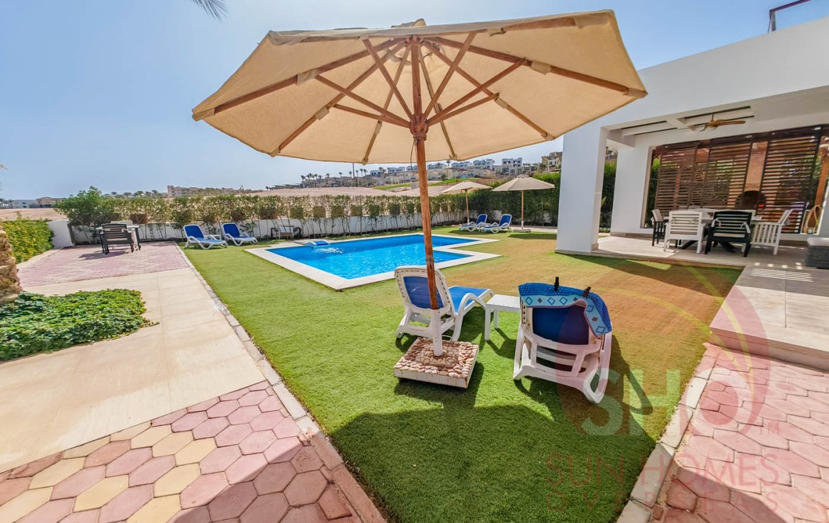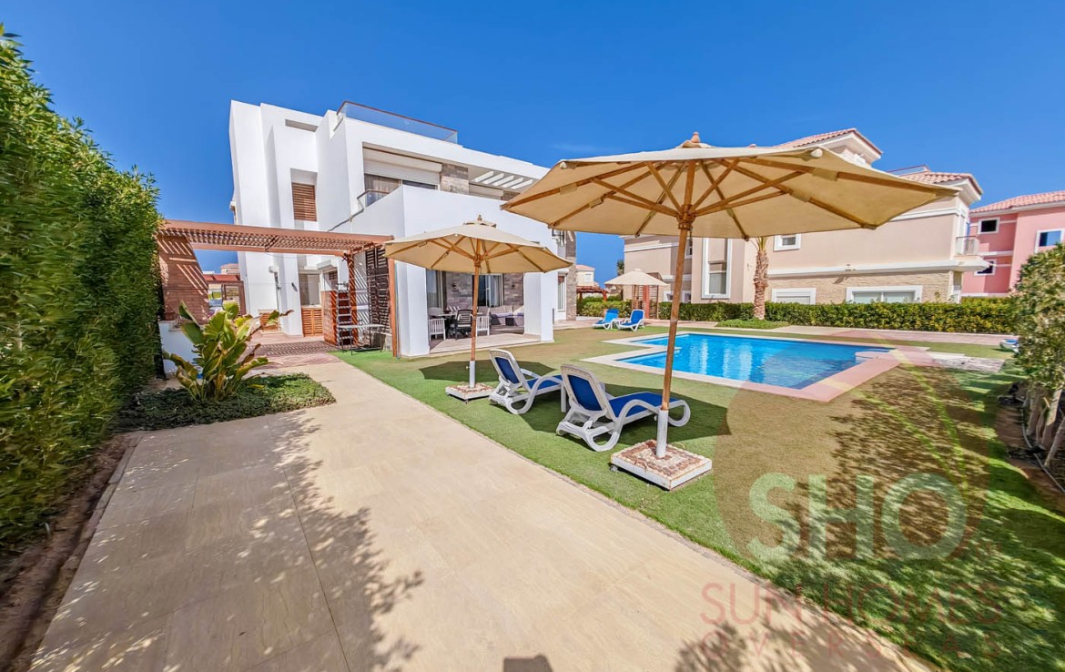 Presenting for sale A 5 star luxury villa in the prestigious area of Jamaran, Sahl Hasheesh situated in a sought after plot at the beginning of the villa district and benefitting from a north/south orientation but with unrestricted sea views.