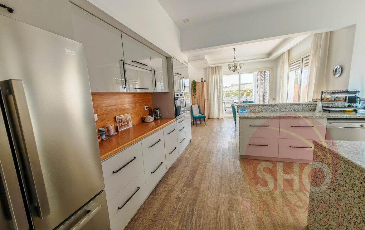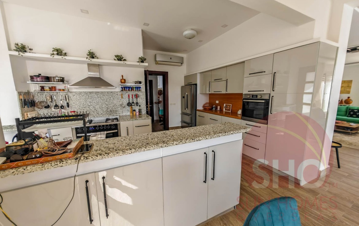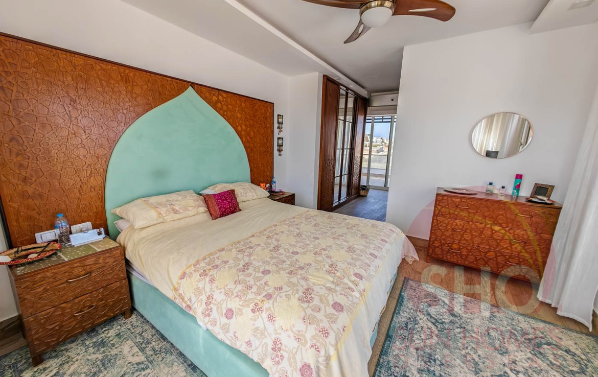 The property will be supplied in a turn key condition, removal only of personal effects from the first owner. Comprising of 4 master bedrooms, 3 with sea view and balconies. Larger open plan living in a contemporary style of finishing the villa also has distinctive hints of Arabic design. This villa was put together as a home and benefits from comforts like heated swimming pool, and cost effective solar hot water.