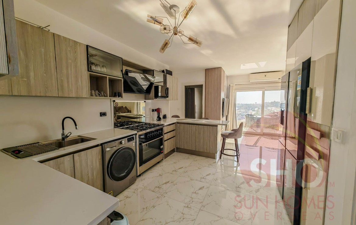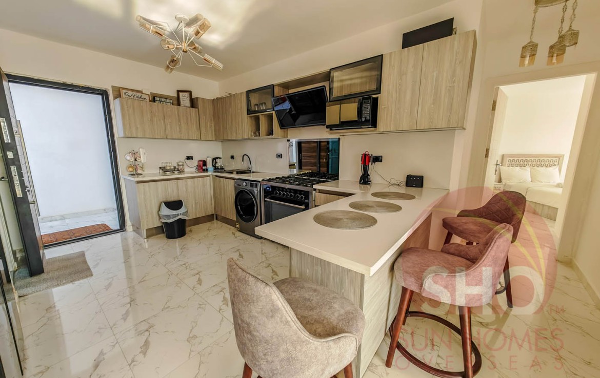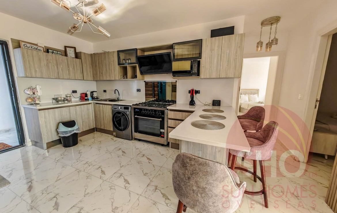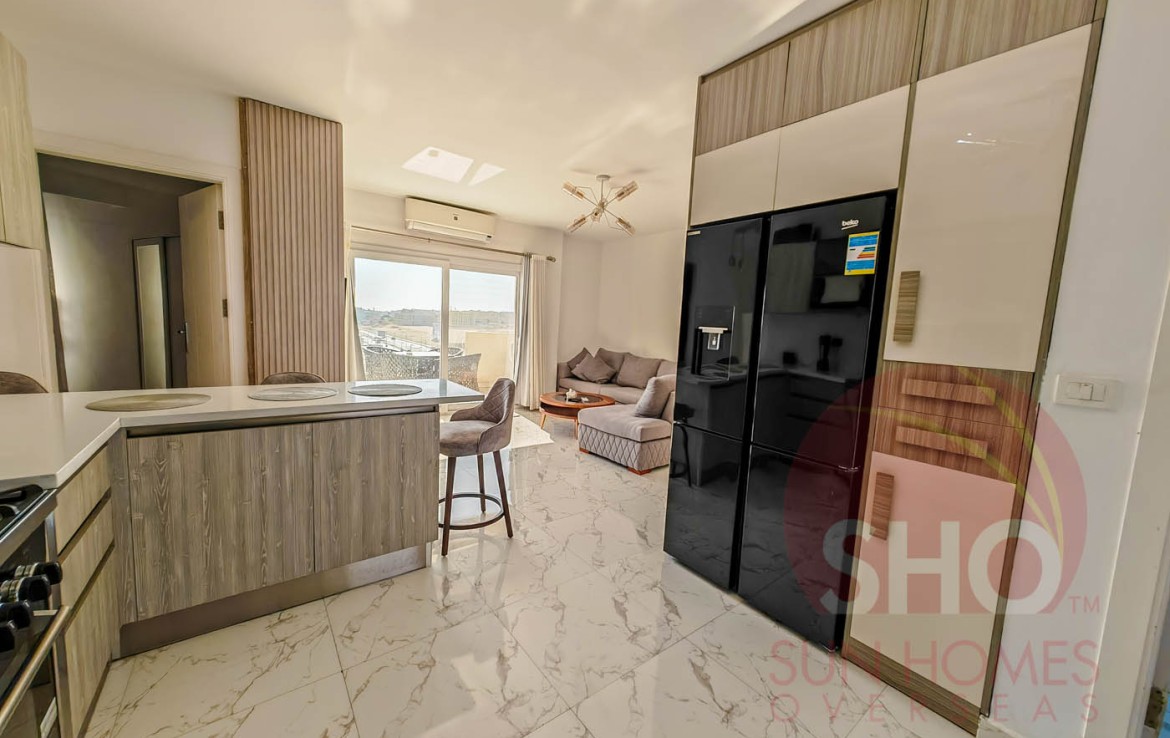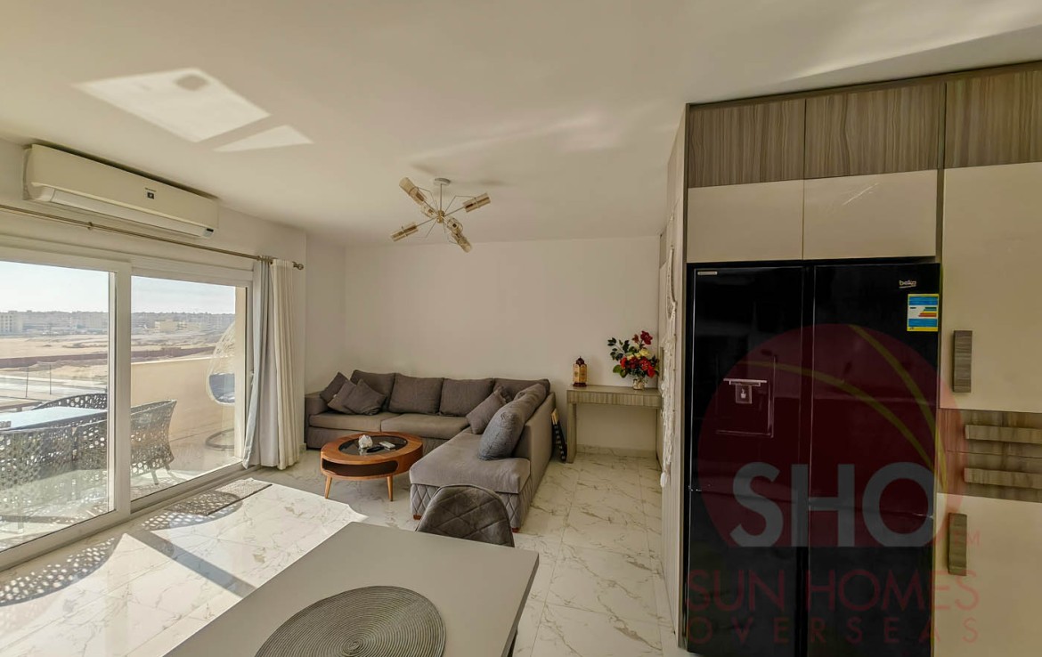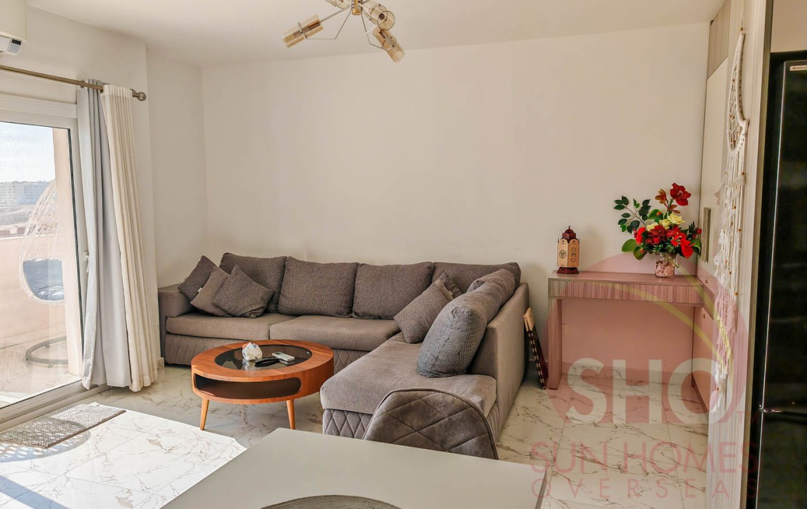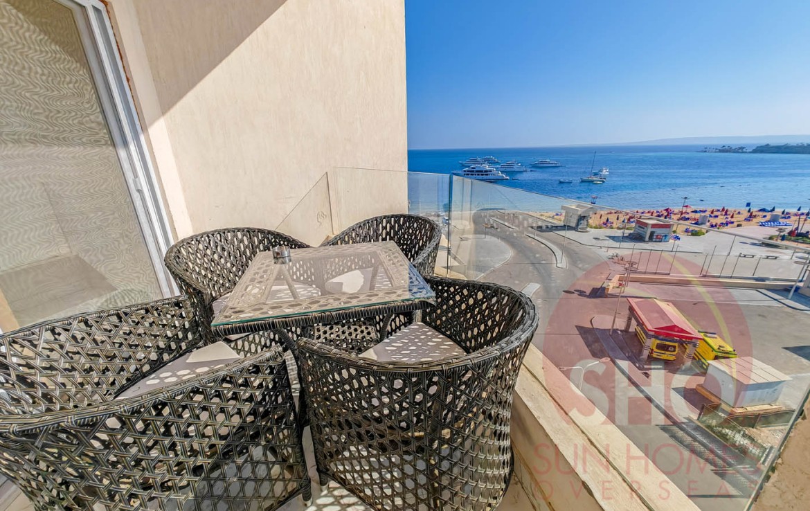 Presenting for a stunning luxuriously furnished top floor central Hurghada apartment with stunning panoramic sea and beach views. This beautiful property has been decorated to a superb standard and very high quality fixtures and fittings throughout. Offering some of the most amazing and guaranteed sea views, this property benefits from an open plan living kitchen area with quality kitchen units, storage and living area with a glass balcony offering stunning views. There are 2 double bedrooms, both of which face the sea, and a spacious tiled bathroom with shower, sink and toilet. Sold with the furniture and air conditioning included, this property makes an ideal holiday home or rental investment.