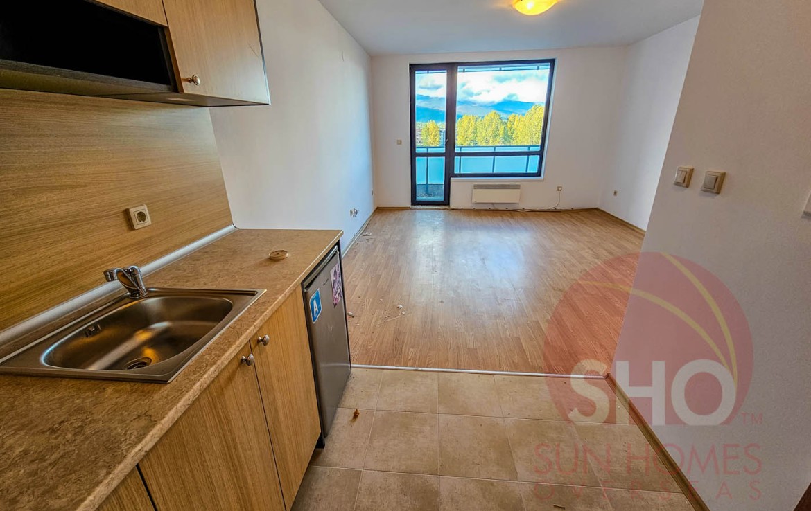 Viewing is recommended of this 1st floor studio apartment which is to be sold unfurnished. The property consists of an entrance , fully tiled bathroom with bathtub/ over shower, fully equipped kitchen with white goods , lounge area with patio door leading on to the balcony which has views to the mountains.