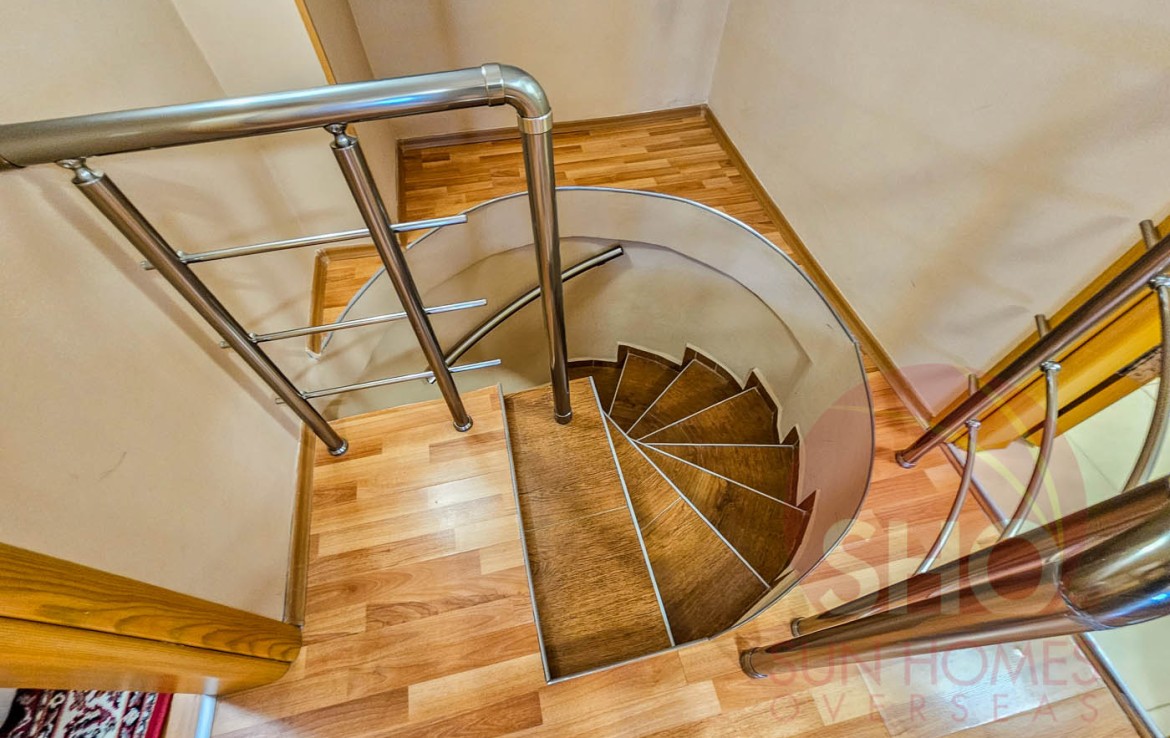 Viewing is recommended of this top floor penthouse level 2 bedroom apartment which is to be sold furnished. The property consists of a spiral staircase entrance, fully tiled bathroom with bathtub /over shower, fully equipped kitchen with white goods, dining table / chairs, lounge area with sofa bed / TV/ storage units, 2 double bedrooms with beds / storage units.